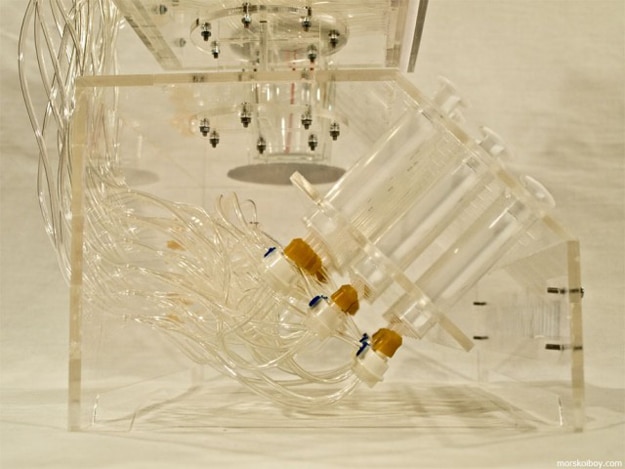 All of this creative loveliness was built by Russian artist Morskoiboy. You can learn more about how he made this, and how it works exactly, by checking out his website or watching the video below. If this machine were used in a club, would they charge for drinks by the letter? I mean, just asking.
