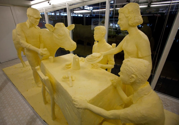 Before reading about this story, I never knew that butter sculpting existed. Now that I’ve learned about the process, I’m intrigued by it. Your hands have to remain so cold that they are almost numb while you sculpt with the butter otherwise it will melt, and of course, you have to have a cold place to store your creation when you are finished otherwise, you guessed it, it will melt.
