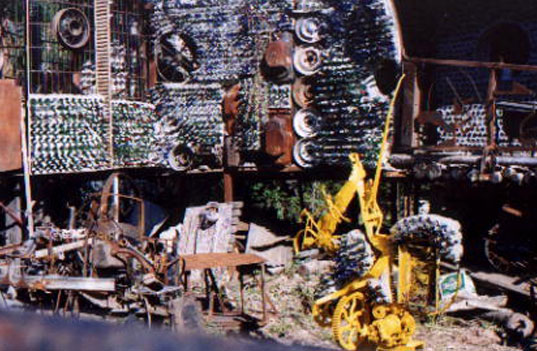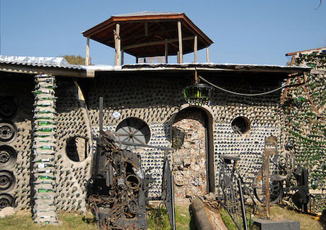 It also looks like part of this house is made out of trash, but that’s cool, to each his own, right? It could be expected when you are hand crafting a house with walls made of mud, cement and bottles that some metal, plastic pieces, hub caps and old bicycles might get thrown in the mix. Like http://dornob.com says, it’s really just a “weaved web of recycled wonders.”