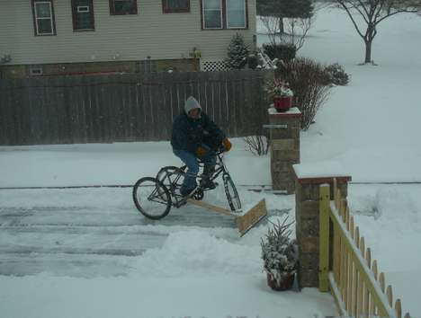 There are better, and definitely more fun ways to get rid of that snow without breaking your back doing it. It’s called the Bike Plow, and it is created by Craig Smith. It’s exactly what you think it is, and it’s even more fun than you could ever imagine. And, if you get tired by plowing the snow by just riding a bike, then you should probably start getting your butt off that couch of yours and do a couple of laps around the block cause you aren’t nearly pulling your weight to keep your health in shape.