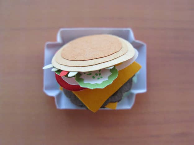 I love cheeseburgers and I love paper art, so this article makes me happy. Have you noticed that the trend lately with food art is to make it tiny? It doesn’t take much snooping around the Internet to find some very creative itty-bitty food creations.