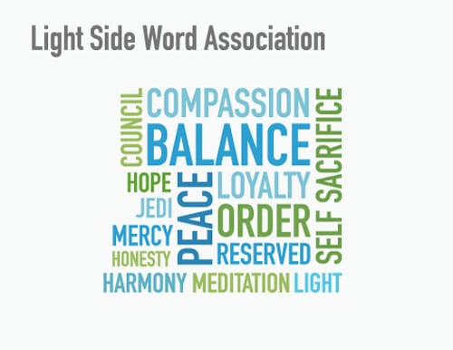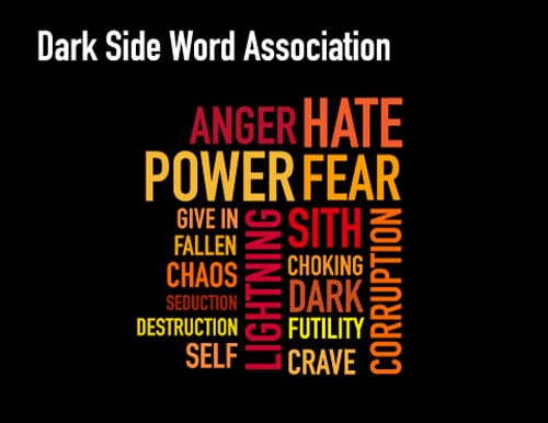 Are you wondering why the body parts in the “Limbs Lost by Demographic” image are all mixed up? It’s because Yoda made that graphic. All the rest of them were created by Oskoui+Oskoui, an advertising agency in Los Angeles. The Jedi could really use a little more color and diversity in their closets, don’t you think? And, if you’ve never read about those lighsaber colors before, may I suggest you check out Lightsaber Color Symbolism on the Star Wars blog? I love those little word clouds too. These cute graphics make me want to go watch Star Wars again, for the gazillionth time.