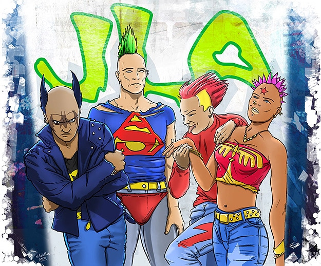 I grew up with the Justice League. Like every other geeky girl, I wanted to be Wonder Woman sooooo bad. Have you ever thought about what it would be like for the Justice League to go punk? Yeah, me neither, until today. Although these illustrations are insanely creative and very well done, they kinda mess with my interpretation of what the Justice League is.