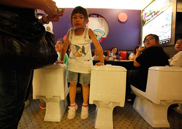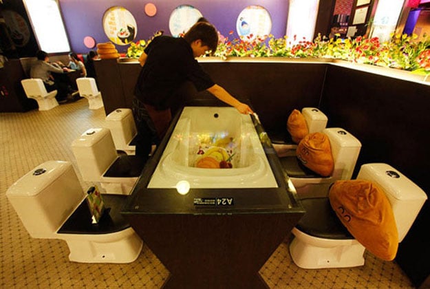 In the restaurant bathrooms, you even wash your hands in… you guessed it… a toilet. I don’t know if I would be able to eat here, but I sure think it would be fun to visit. A lot of people say this restaurant is the shit (ok, that was lame), but I think I might have to order my dinner in a doggie bag to go.