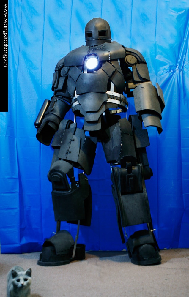 If you’re looking for more Iron Man related real news, I think we’d do best by checking out Wang Xiao Kang‘s awesome $460 build. It’s nothing less then a replica of Mr. Stark‘s Mark I epic Iron Man suit. Not only is it awesome, it’s also the closest to the real Iron Man suit you will ever come. It’s all cosplay of course, but the features look so real that this probably is even more real than the Iron Man suit itself. Mr. Stark’s suit is only a movie prop, this one’s for real. Well, almost I guess.