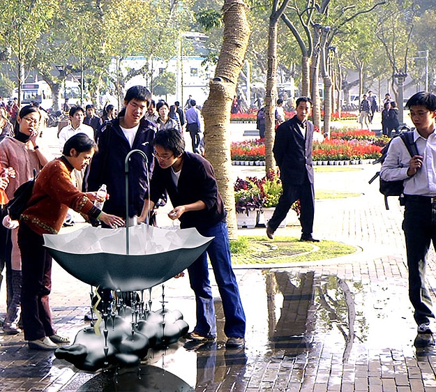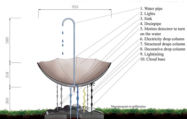 They have taken the concept of bad weather and turned it upside down, and in the process created a fun new drinking fountain concept for the parks in London. This new design, called a Storm Flipper, is an upside down umbrella with the thunderstorm underneath.