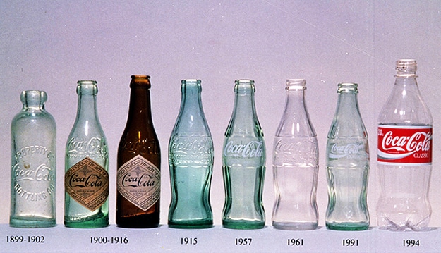The history of Coca Cola seems to be quite jumbled by myths and facts, and in order to retell the whole story the right way, I guess we would have to go right to the source, the Coca Cola Company itself. However, to explain the shape of the beverage, there is only one picture needed. It’s one of those images that says a million words instead of printing them in text. The shape of the bottle means everything! It’s all about beauty and desire. I don’t think any other beverage has the same beauty when it comes to its packaging. If there is one, we would very much like to know about it. Do you know of any bottled beverage whose bottle would beat the retro Coca Cola beauty? (Yes, there are two images but the bottom one I only included to illustrate the year when they were introduced.)