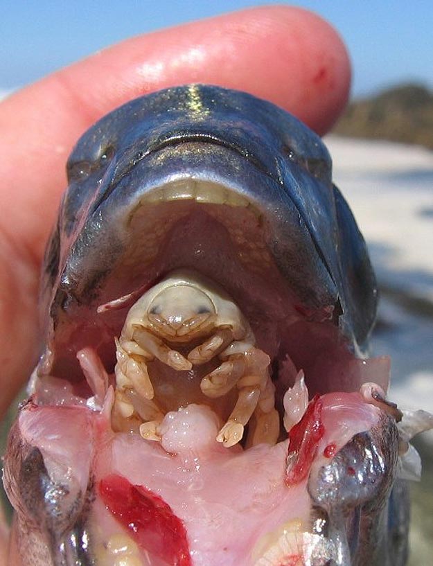 This is number 9, which is your bonus bug. He’s not big, but he’s the baddest and fugliest of all. This tongue-eating louse gets inside another animal’s mouth, avoids being swallowed, and then bites that victim’s tongue and sucks its blood. Mmm… tasty.
