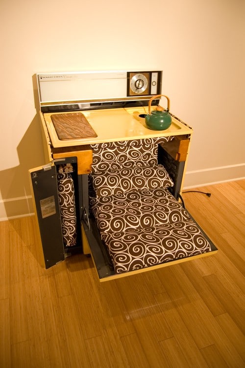 The Oven Lounge is just wonderfully retro and with a little bit of further modding, you can turn it into a listening station as well. Incorporate a dock into that oven on the headpiece and you’ll have yourself a relaxation station worthy of a geek’s butt resting on it. Brilliant and clever! I can’t wait to see more of these things! Retro geeks are here to stay!