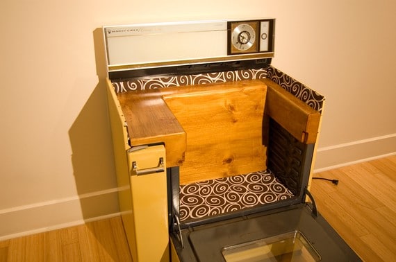Etsy seller WayOutHere has one of the most awesome creations on sale and for the geeky price of ONLY $250. It’s an oven turned into a comfortable foldable lounge. Open it up and relax those fragile and tired bones of yours, and you’ll find that the geekiness you thought you were harboring inside is now showing its true colors.