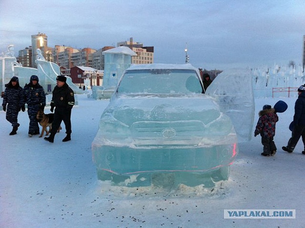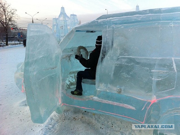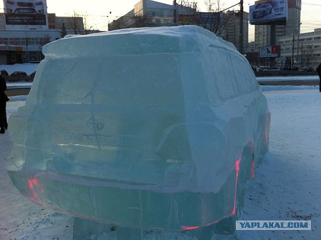 In that case, I suppose you’d have time to build something spectacular without standing in a huge freezer the whole time or without it melting before you’re finished. Somebody (maybe Toyota?) built this full size Toyota Land Cruiser ice carving, and it’s fantastic. They even added a few LEDs for effect.
