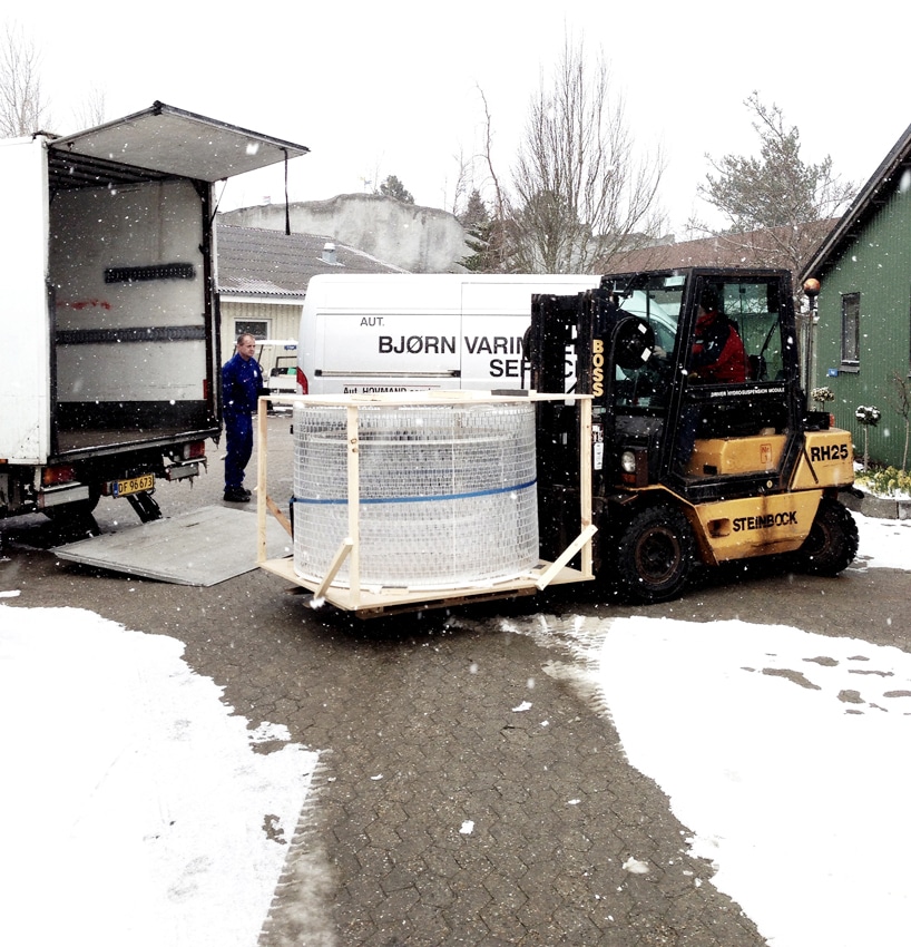 This chandelier made from LEGO pieces was created by Tobias Tostesen. He hand-placed each of the 8,000 LEGO bricks himself, and I’m sure it took an extraordinary amount of time and patience. It’s a massive structure that is described as being a floor-to-ceiling installation. It looks like it would be lightweight since the LEGO pieces are made out of plastic. I couldn’t find how much it weighs, but judging from how it was transported (see the pic below), it’s heavier than you might think.