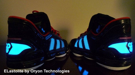 The blue TRON glowing lights aren’t just part of some random reflective glow-in-the-dark materials. Nope, those are actually three dimensional, elastomeric, membranous, flexible electroluminescent lamps! In other words, those are lamps built into the shoes. Oryon Technologies has patented this brand new technology, and you can read all about the juicy geeky details on their official website.