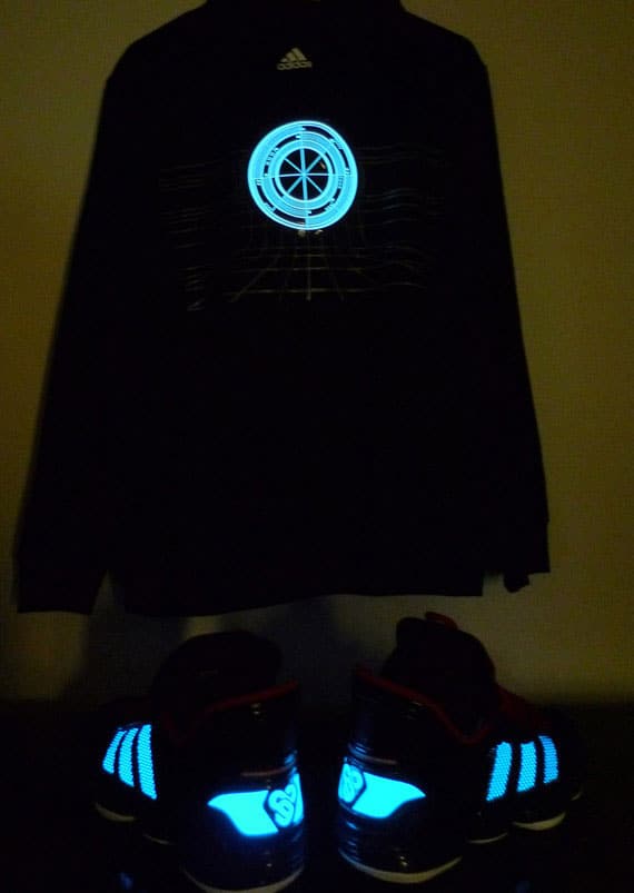 The blue TRON glowing lights aren’t just part of some random reflective glow-in-the-dark materials. Nope, those are actually three dimensional, elastomeric, membranous, flexible electroluminescent lamps! In other words, those are lamps built into the shoes. Oryon Technologies has patented this brand new technology, and you can read all about the juicy geeky details on their official website.