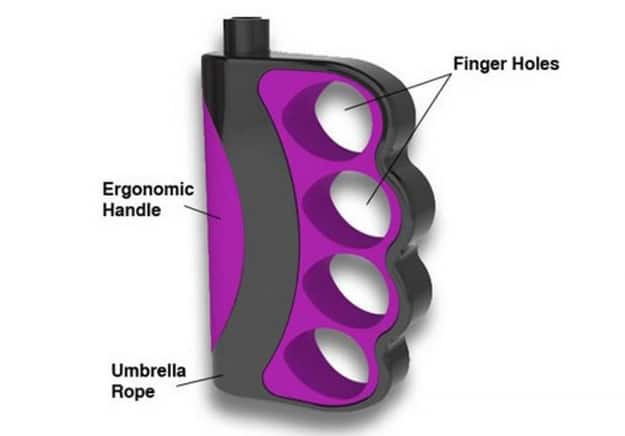 This umbrella design was inspired by the fact that people can’t text and hold an umbrella at the same time. I’m not sure why someone would want to text in the rain, but apparently some people do. If you are one of those people, now you won’t have to put down the umbrella to have access to your speedy typing thumb. You’ll be able to hold this umbrella with your fingers and keep your thumb free for texting (or tweeting, etc.)