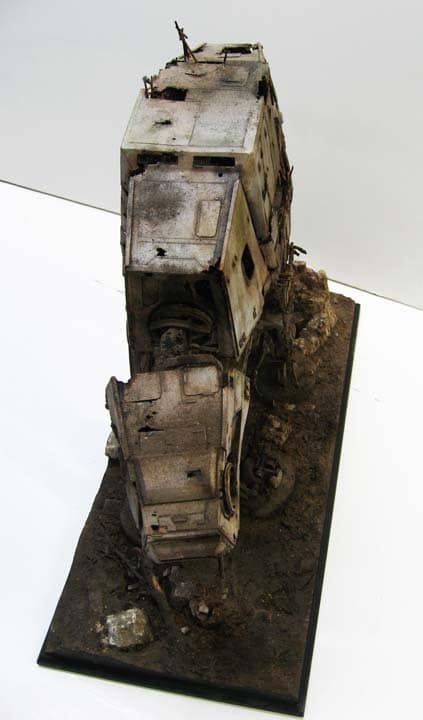 Well, let’s not be so depressing as to discuss that today. The point I want to make is that even though you are living in the Star Wars galaxy, things still fall apart and deteriorate. That is something that Dimitri Kaliviotis is clearly aware of since his latest model build of an AT-AT has become an Abandoned Refuge (which is also the name of the build itself). It’s one of those miniature model builds that if photographed up close, would look super real, I am sure.