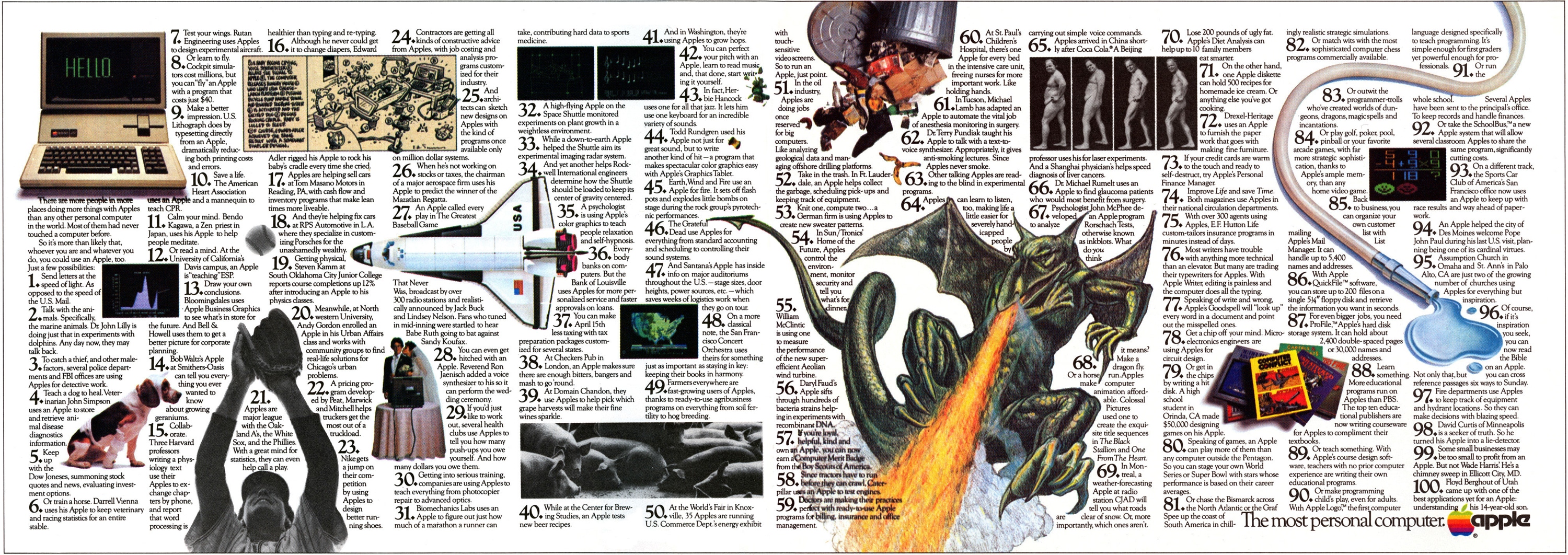 So where do Apple ads fall into the scope of all this? This morning I was on Mac Mothership checking out all the Apple ads from 1976 until today. If you are interested in learning more about how Apple has been able to work their magic into our brains, check out all those Apple ads. It will blow your mind. I had no idea how much education was inserted into the early Apple ads. It’s almost like people learned about what personal computers are and what they can do from those ads. I chose a few of them to share with you here, but to see the full collection of Apple ads, you can click over to Mac Mothership. Oh, and I can’t close this article without saying this – Notice the sexism in these vintage ads. Yeah, it made me giggle.