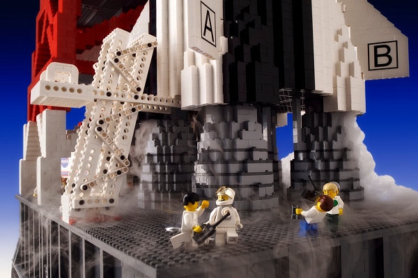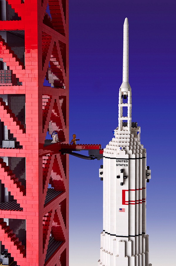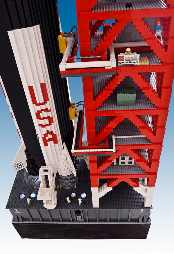 This was created by Ryan McNaught (TheBrickMan), who is a Lego certified professional. I wonder if that title means he gets to play with Lego bricks all day long for his job. Hey, I want to be that when I grow up. What a cool job that must be! I love the little liquid fuel tanks and the NASA Astrovan in these images. This is on display right now at the Melbourne Town Hall. Click over to Ryan’s flickr to see many more pictures. Wow!