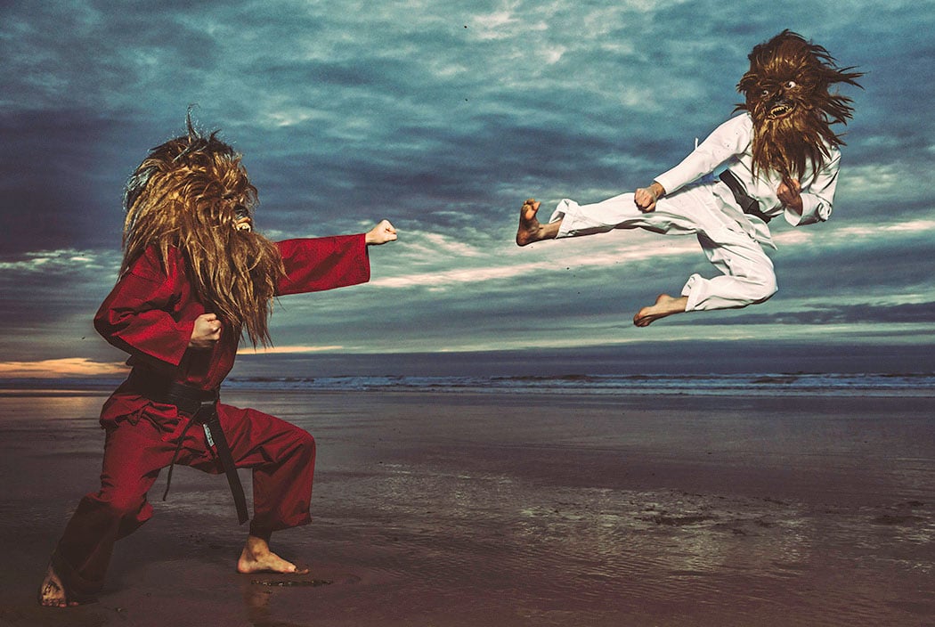 I suppose the more relevant question to ask is, if wookies did live on our planet, and if they mated with humans, what would their kids look like? Perhaps that describes this photo collection full of half-wookie / half-human beings having a great life. As you see, they are having fun roller-skating, practicing karate, driving and even doing yoga.