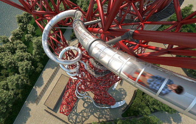 It’s called The Slide and is created by Belgian artist Carsten Höller at the invitation of Sir Anish Kapoor, designer of the ArcelorMittal Orbit (UK’s tallest public artwork). The slide is intertwined within the artwork itself offering the unique experience of seeing the artwork from almost any angle. The visitor will circle the ArcelorMittal Orbit artwork 12 times just to make sure you don’t miss a single curve of the impressive structure.