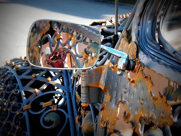 The swirling and bent wrought iron weighs in at around a few hundred pounds or so, which make this beetle quite unique. However, I wouldn’t try and get this modified Volkswagen up in any excessive amounts of speed as the body work on it is completely hollow. The intense wind (not to mention bugs) would probably make you blind before you even hit third gear.