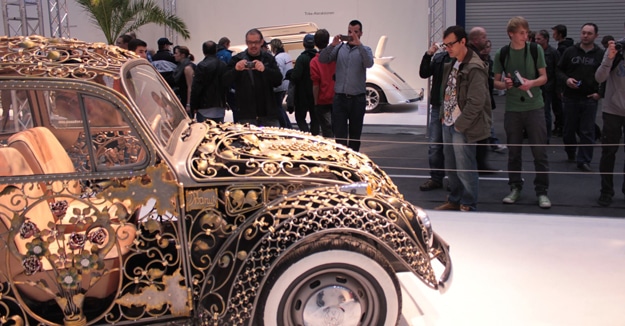 The team decided to modify a 1970s Volkswagen Beetle, and they wanted to use wrought iron to do it. It took the 3-man team the epic amount of 3,500 hours (yes, that is 437.5 8-hour work days for the people that are too lazy to do the calculations themselves) to finish up the project. Not only that, but the team also added over 5,000 Swarovski crystals to further pimp out this modified Volkswagen.