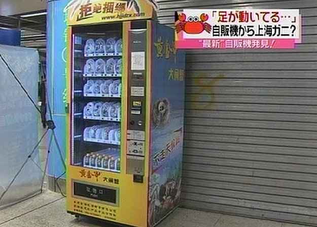 This vending machine was created by a Chinese man and is currently in China. Soon; however, it may work its way over to Japan. According to Japan Probe, “The inside of the machine is kept at 5 degrees Celsius, a temperature cold enough to make the crabs go into a state of hibernation. If the crab is dead-on-arrival, they promise to give you three free crabs.” Holy mother, are you kidding me?