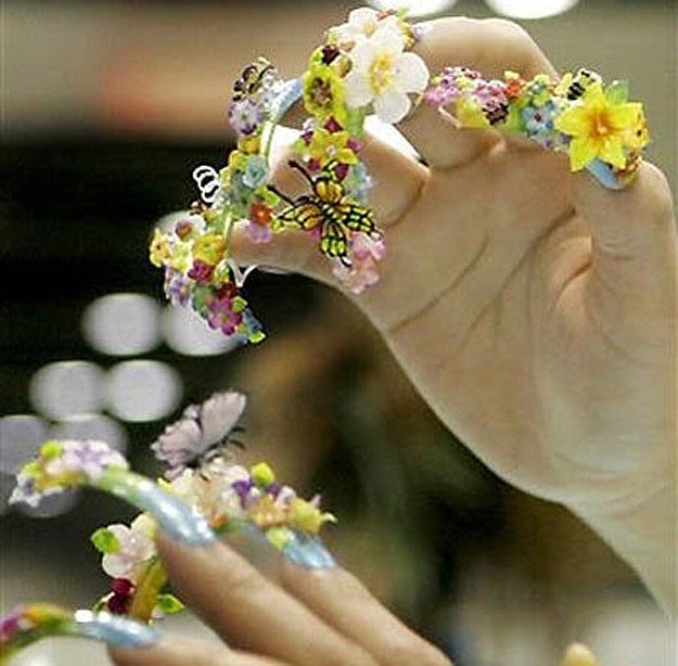 It’s true, apparently there is an event called Nailympics, and it’s been held in the UK every year for the past six years. Nailympics 2010 just took place last week, and the manicurists that entered were as serious as ever. Teams from 24 countries competed in the different categories of nail art. One of the competitors even had electric lights attached to her nails.