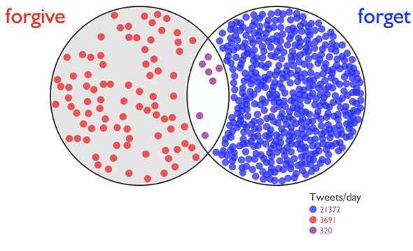 We are in agreement that most people can forget. Out of sight, out of mind I think the phrase is. Lot of people talking about forgetting, but to forgive and forget?! 3691 people talking about forgiveness and 21,372 mentions of forgetting. That converges on a dismal 320 people who will forgive and forget. Not enough people, we need to step up production or there will be some people losing out here. Don’t make me tell you again. And make sure and fill out those TPS reports on my desk EOD or COB, whichever is sooner. Ok, what was I talking about now… ah yes…
