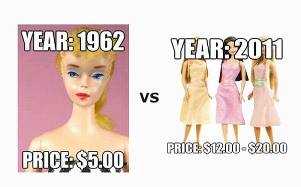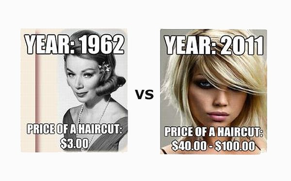 Along the same lines, ten years ago I would never have paid $120 to get my hair colored or $60 on a pair of blue jeans, both of which I do now. Acid Cow took a look at how times have changed and laid it all out for us in these pictures below. You can click over to their website for even more examples. The person who created this must live in a small town though because here in the city of Atlanta, a lot of this stuff costs more now than what is listed. I think the biggest shocker on here is the cost of University tuition. I’ve known all along that the cost of education is skyrocketing, but dang, at this rate, who will be able to afford college in the future?