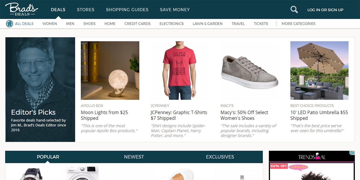 The coupons on the site are handpicked by the website publishers. You might want to choose from latest deals to the most popular offers or request to what is known as Brad’s picks.