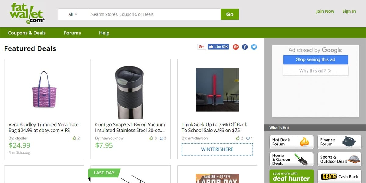 FatWallet offers pages for deals, which varies from gadgets to clothing, computers, and many other tools.