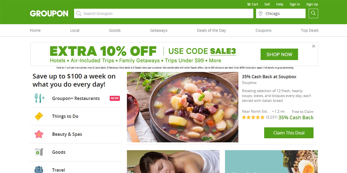 Groupon thrives on community values, inspiration, performance, etc. They believe life should be fun and paying excess charges shouldn’t be a part of it.