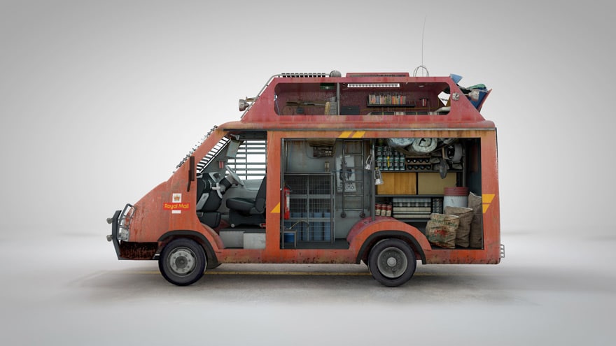 Designer Donal O’Keeffe also has his own idea about what a vehicle pimped out for zombie apocalypse should look like. He created the series you see below with Cinema 4D’s Physical Renderer. Donal said: