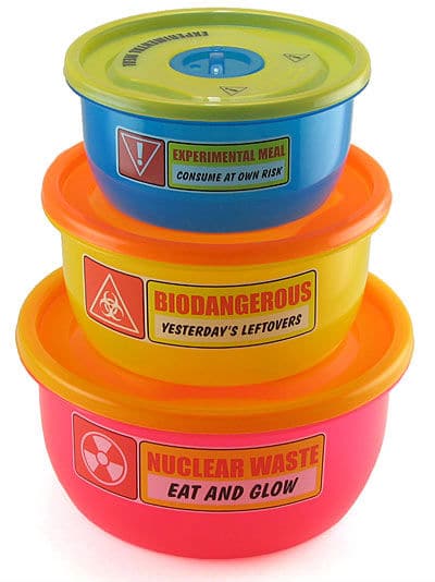 Atomic Food Container – If you keep food in these fab containers for too long, the warnings will be real. But until your meatloaf’s atoms decay, these containers will be a great laugh to your kitchen or office or office kitchen. Sells for $8.99