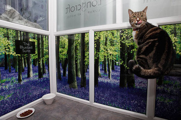 This luxury hotel for cats, called the Longcroft Luxury Cat Hotel, recently opened in England. Check this out… cats that stay here listen to classical music, sleep in four poster beds, drink oxygenated water, go to the spa for pampering, and eat organic food served on a silver platter. Dang, it sounds like these cats have a better life than me. Must be nice! If you send your cat here for a little vacation, you will even receive postcards from him or her detailing the daily activities. I know you are wondering if this if for real. The answer is yes, it is. Haha!