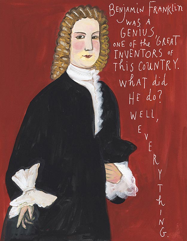 The moral of the story is, whenever you are feeling overwhelmed with your day and your phone, your Twitter, your email, your Facebook messages, your IM, your kids, your pets, your boss, your lawn, your broken down car, your grumbling stomach, and your mother are all begging for your attention at the same time, just smile and think of Benjamin Franklin. You don’t have to meet everyone else’s expectations and be constantly busy in order to be great. #profoundtruth