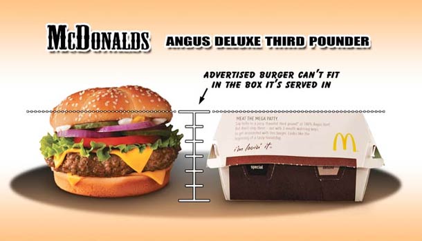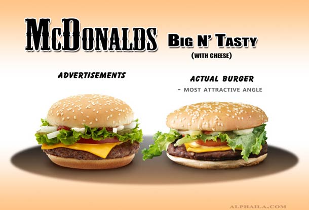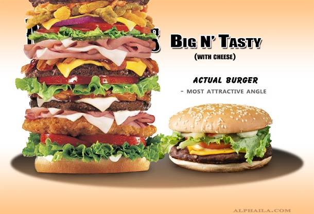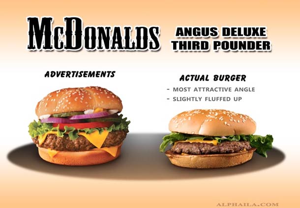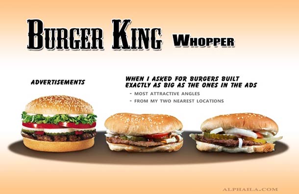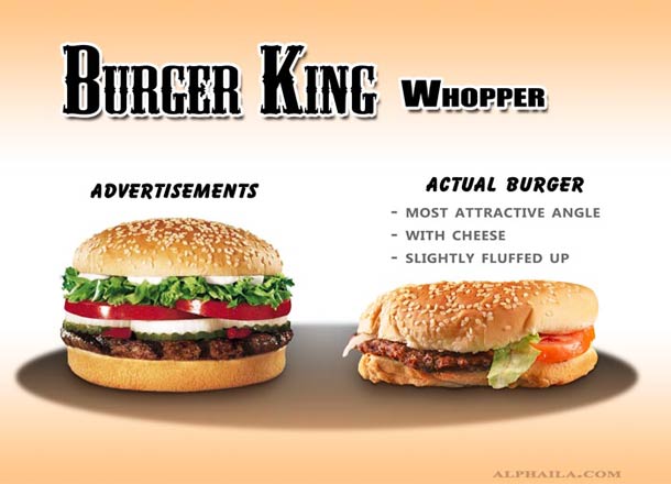 Let’s talk a little about the fast food that millions of people stuff their faces with each and every day, especially the millions of hamburgers that are consumed. Advertisements are one of the most powerful mediums these burger chains have to spread their reigns. We don’t seem to be phased by the differences between an advertised burger and the one that is actually in the package when we get it, and we consume it like our lives depended on it.