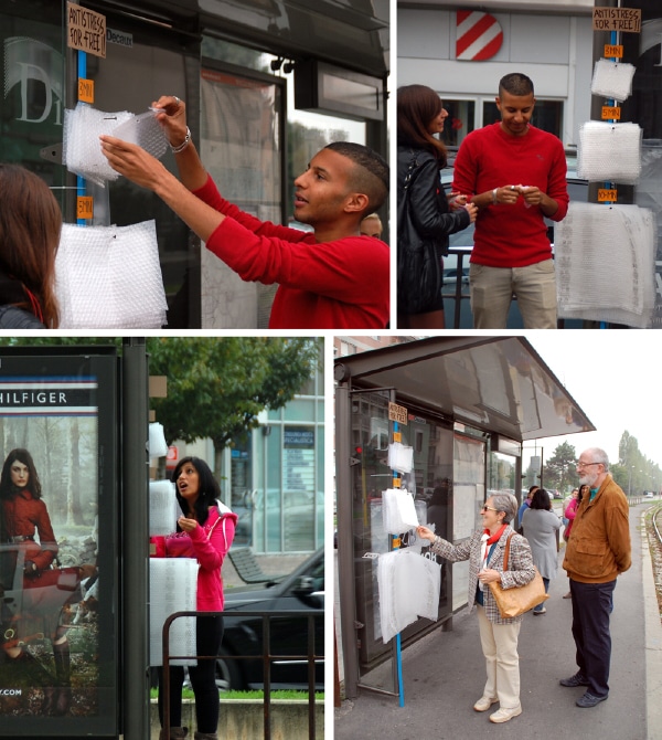 Artist fra-biancoshock must feel the same way. He installed a place where people can de-stress at a bus stop in Milan. It’s a little station where people can take a free sheet of bubble wrap to pop if they need a moment to relax. As you’ll see in the pictures, they are labeled 3 min, 5 min and 10+ min which shows how long the bubble wrapping experience will last. You just take the size that is appropriate for what you need and start popping. It’s a very simple, clever way to unwind, and it’s a lot more convenient than getting a massage.