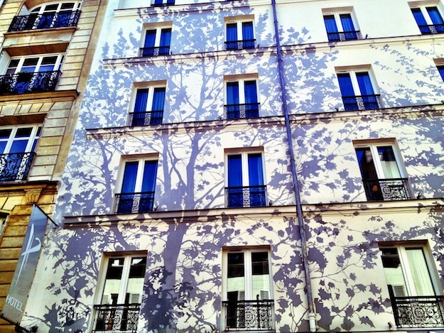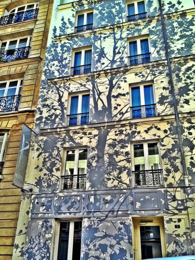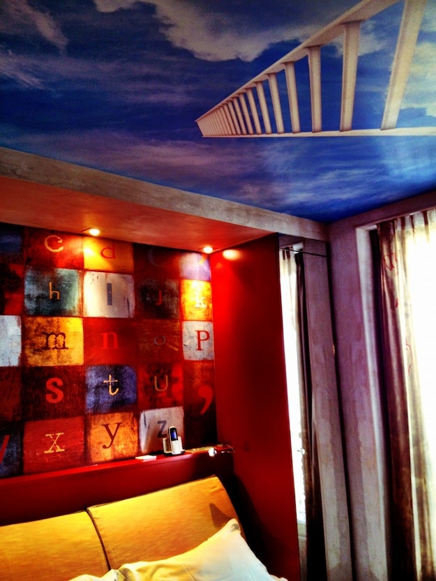 Are you looking to sleep under a massive typewriter, dance through clouds on a rainy Paris evening, and step directly into a lush romantic shower, all without leaving your hotel? If so, I would recommend the Apostrophe Hotel. It’s the perfect pit stop for the wordsmith-come-design geek, and it’s a sure thing if you’ve been dying to check in to a stunningly lettered, uber-chic Tower of Babel nestled into one of the most beautiful, quiet blocks on the Left Bank.