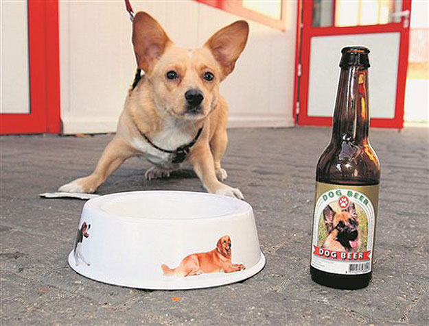 WTH, I think I’ve seen it all now. I thought after I wrote about these dog highchairs, there wouldn’t be any other way to make our dogs seem more like human beings, but I was wrong. Do you want your dog to get snokkered with you this weekend? Now he can! All you have to do is fetch him some Dog Beer.