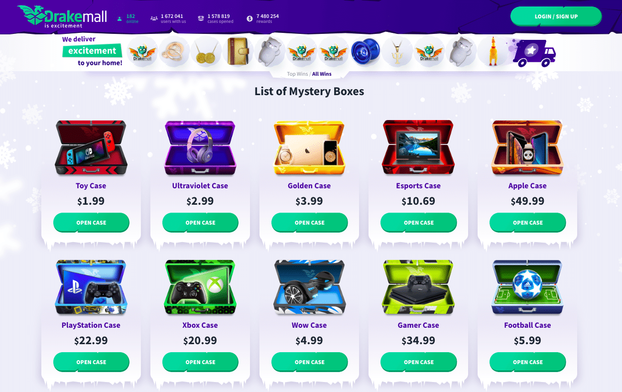You need to start by signing up with the site Drakemall. During sign up, you need to buy a gift card of a minimum of $5. This money can be helpful for you in Drakemall unboxing later on. You will come across a number of mystery boxes that you need to click open with the help of the gift cards. Depending upon the probability chances and if your luck favors, you can get the item delivered to your place that you wanted to have.