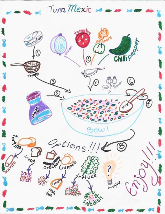 It’s not just artists that are illustrating or drawing recipes. It’s really anyone that likes to doodle while they cook! As you see from the pictures below, there are many different interpretations. Some are comic book style, some are bright and colorful and some look like a menu from a restaurant. If you like to draw recipes, you can go to https://www.recipelook.co.uk and submit yours to share with everyone! Below is a sampling of some of the recipes on that site. I love cooking, but I especially love cooking from pretty pictures. :)