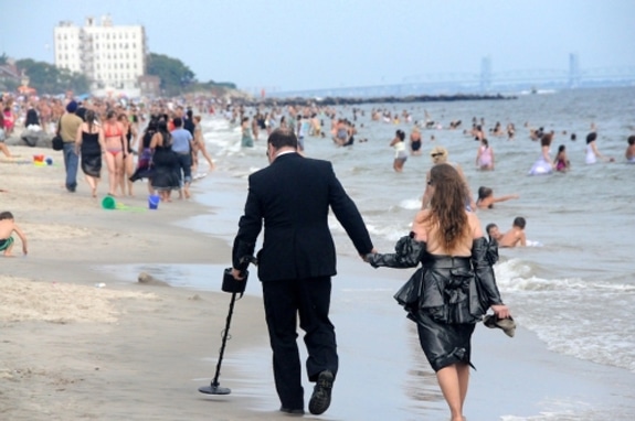 This is just bizarre to watch! There is something so perplexing about seeing men in tuxedos swim in the ocean. This latest Improv Everywhere event took place at Coney Island where hundreds of people frolicked on a mile long stretch of beach in their formal wear.
