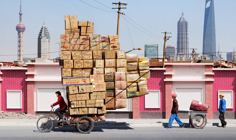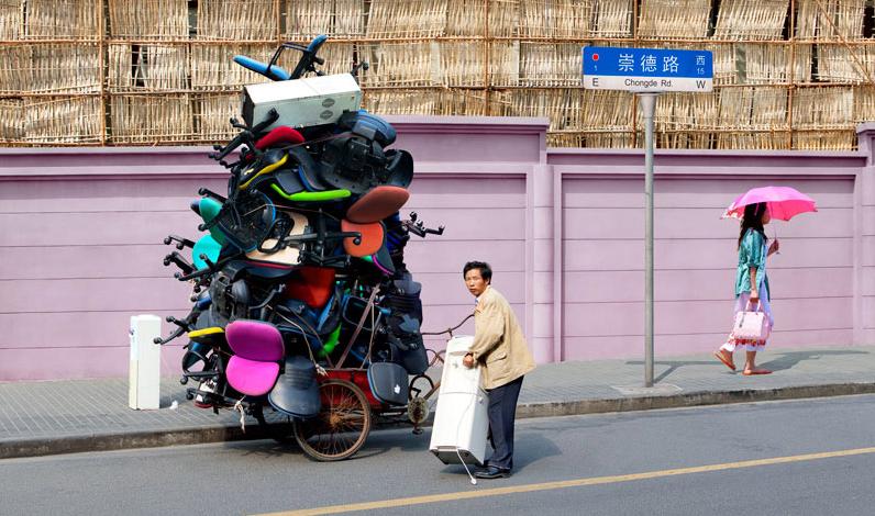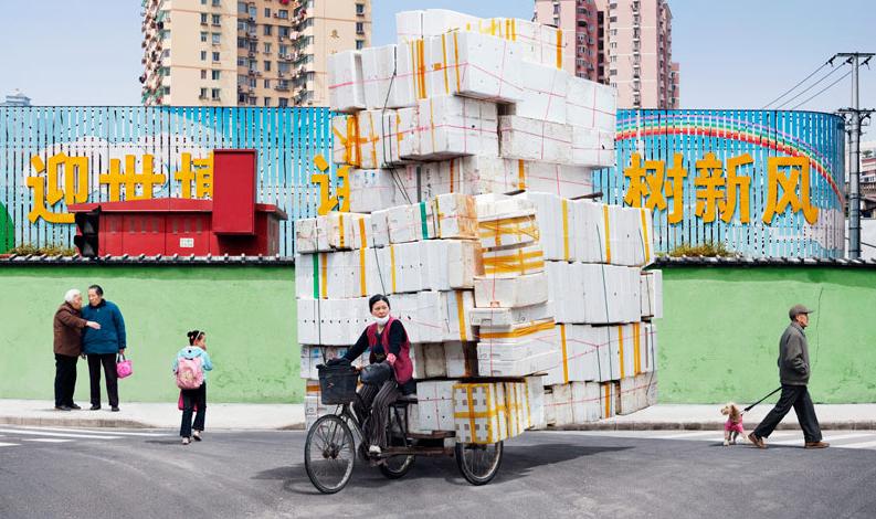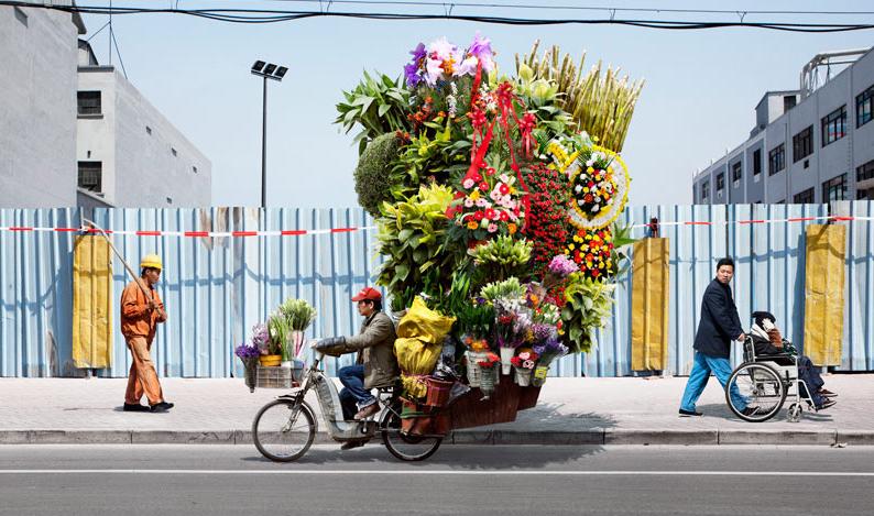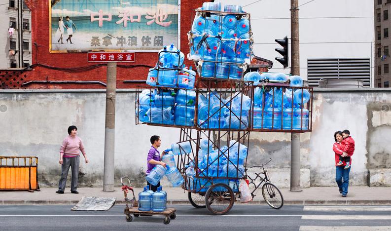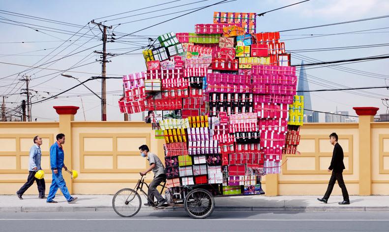 Photographer Alain Delorme has created a stunning, and quite frankly, brilliant series of photographs that picture Chinese people in their every day lives hauling their products to the markets. If you thought you were carrying a heavy load in that backpack that you’re reluctant to put on in the morning for work, think again.