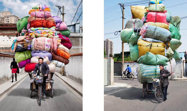 I am just awestruck at the moment. Sure, it may very well be that these photographs are only the creation of an immensely creative and skilled photographer gone amok in Photoshop, but from my own experience and after seeing documentaries, it could go either way really. After all, I don’t think it has escaped anyone’s mind that China is the land of the bikes, and they use them for almost everything. Driving is something that you wouldn’t want to do in the crowded cities since you won’t get too far cause of all the bikes. People even use them to haul truckloads of stuff with them.