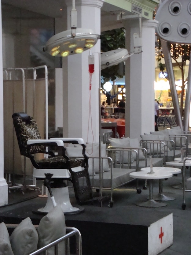 While visiting my brother in Singapore a few years back, I remember a bizarrely distasteful bar that I discovered in his neighborhood of Clarke Quay. It was called Clinic, and it was designed like a hospital with festive golden wheelchairs planted around cool, iron surgical tables.