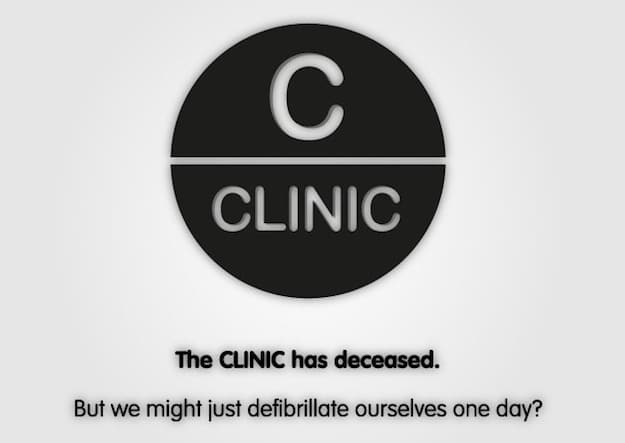 For those of you on your way to Singapore, alas, Clinic is currently deceased, but it is hoping to defibrillate soon.