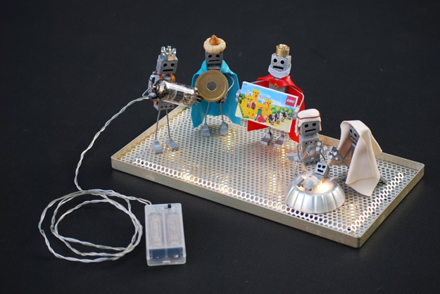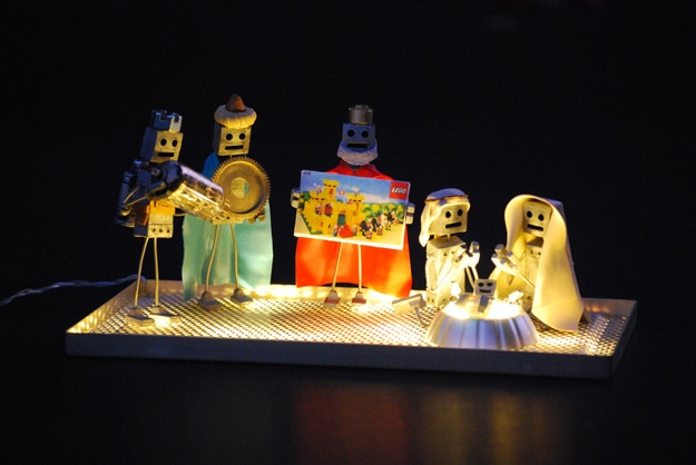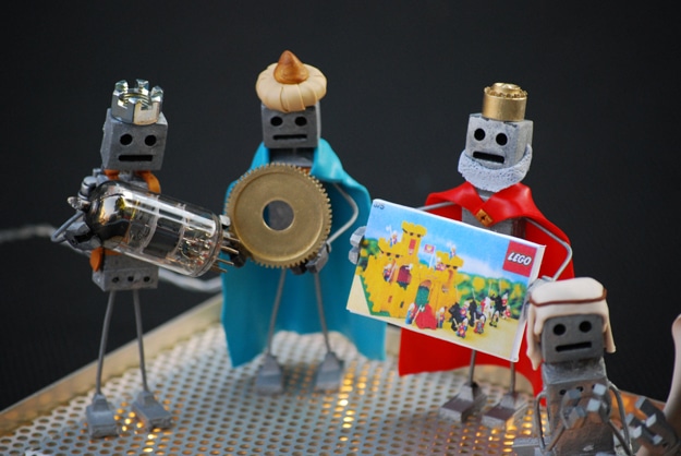 This beauty of a creation was made by Etsy member dayoftherobot. As you see, two of the three kings come bearing gifts of technology, and the third one brought Lego. Those are my kind of gifts! The glowing baby Jesus shines his light from non-warm LEDs. I especially like the robot Mary and Joseph. This gives me all kinds of ideas for how to spice up a traditional nativity scene by giving it a modern day flair. It would be fun to mashup a nativity scene with Apple products. Can you imagine Mary sharing her news about the baby with her iPhone 4S? Maybe she would even send a tweet about it. Very nice!