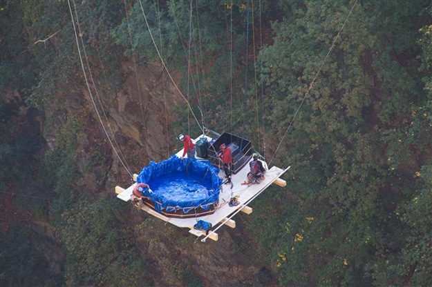 Extreme Jacuzzing: Hang Your Hot Tub Off A Bridge
